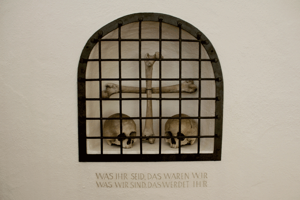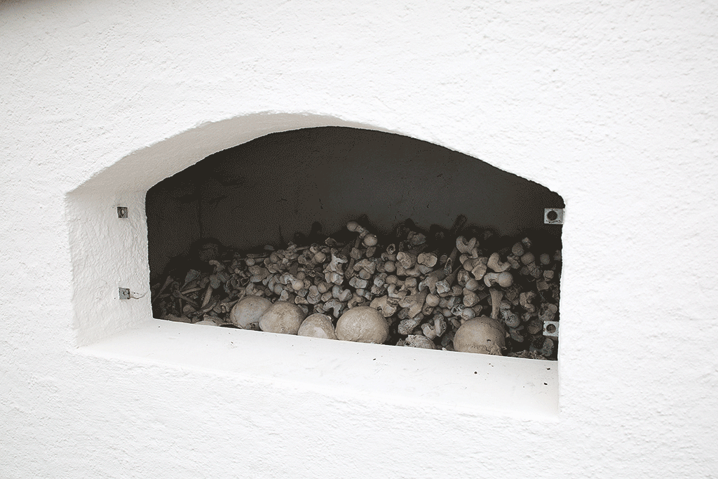 Die Reise führte zu den grossen Beinhäusern in Kutná Hora, Paris, Neapel, Eggenburg (Bild links) oder Mödling, aber auch zu kleineren Ossarien wie die in Burgschleinitz oder Reichholzried, die weitgehend unbekannt sind.